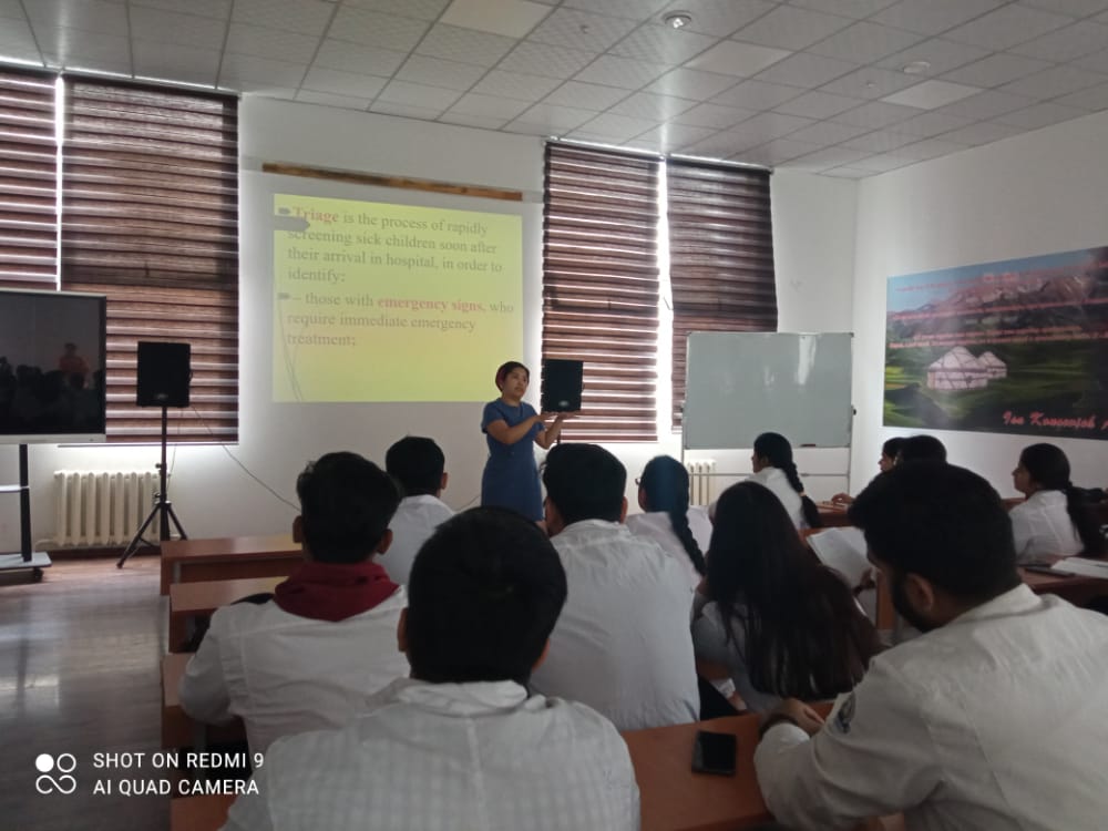Старший преподаватель кафедры терапевтических дисциплин Турдубаева Элеонора Курсанбековна, в рамках ранее подписанного меморандума о сотрудничестве между АзМИ им.С.Тентишева и ОшГУ, была приглашена в ММФ ОшГУ в качестве гостевого лектора и прочитала лекцию на тему «Сердечно-легочная реанимация у новорожденных детей»