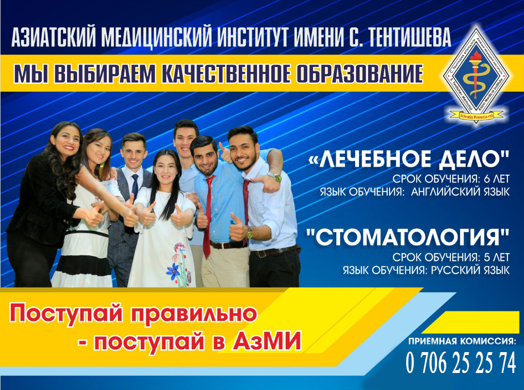 с 1.06. 22 по 8.06.22 в АзМИ им.С.Тентишева прошли Дни открытых дверей. На Дни открытых дверей были приглашены выпускники средних образовательных учреждений Чуйской области, для них были организованы экскурсия по учебным корпусам института и встреча с ректором профессором, д.м.н., заслуженным врачом КР Сельпиевым Т.Т. и проректорм профессором, д.м.н. Буйлашевым Т.С. Выпускники, также посетили мастер классы по Хирургии (наложение швов, десмургия, внутривенные и внутримышечные инъекции) и по Неотложной помощи, А в конце экскурсионной программы выпускников ждала небольшая концертная программа подготовленная студентами института с демонстрацией документального фильма об АзМИ.