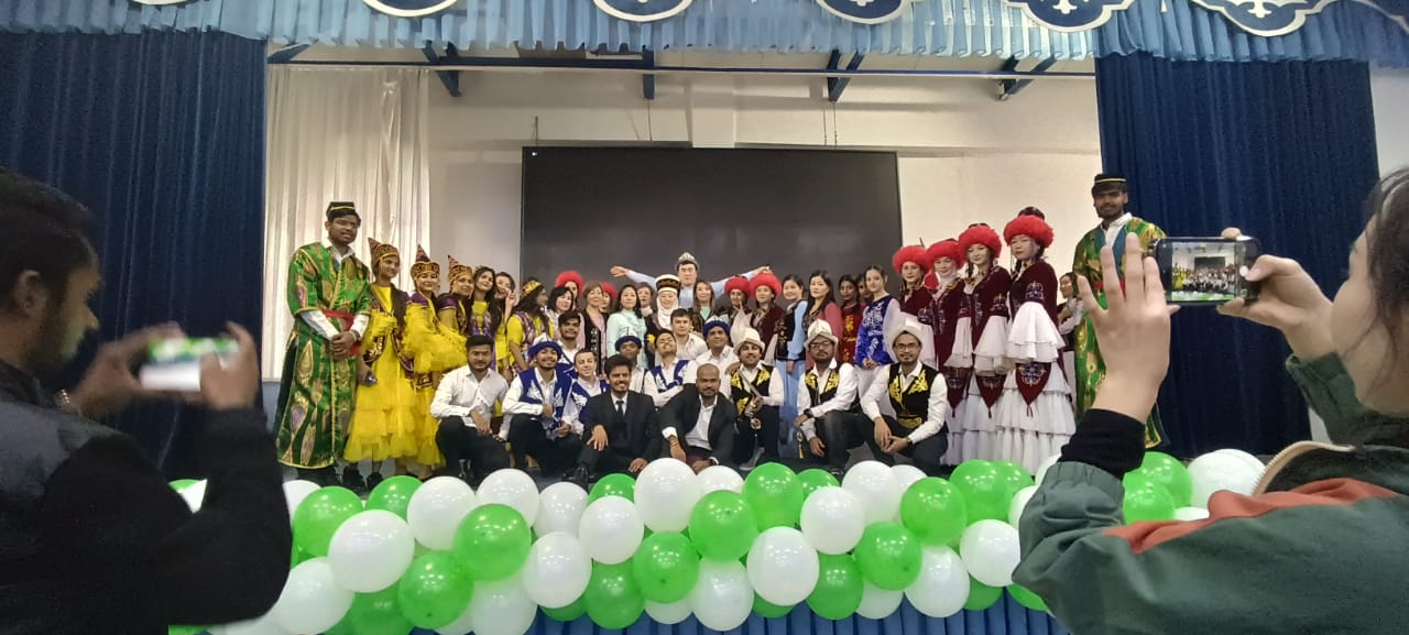 Нооруз – это древний национальный праздник весеннего равноденствия. Уходит этот праздник своими корнями в глубокую древность. Еще до прихода ислама люди праздновали этот день, как начало нового года, обновления природы и человека. За несколько дней до праздника люди убирали в домах, отдавали долги и прощали все обиды. На праздник люди надевали нарядные одежды, веселились и смеялись, устраивали различные игры и соревнования. Большая, дружная и многонациональная семья АзМИ также отметила праздник Нооруз. Под руководством преподавателей кафедры ЕГД студенты 1го и 2го курсов подготовили праздничный концерт, они пели кыргызские песни, цитировали эпос Манас и танцевали кыргызские танцы. Все гости концерта были угощены традиционным сумолок — блюдо которое готовится в преддверии Нооруза.