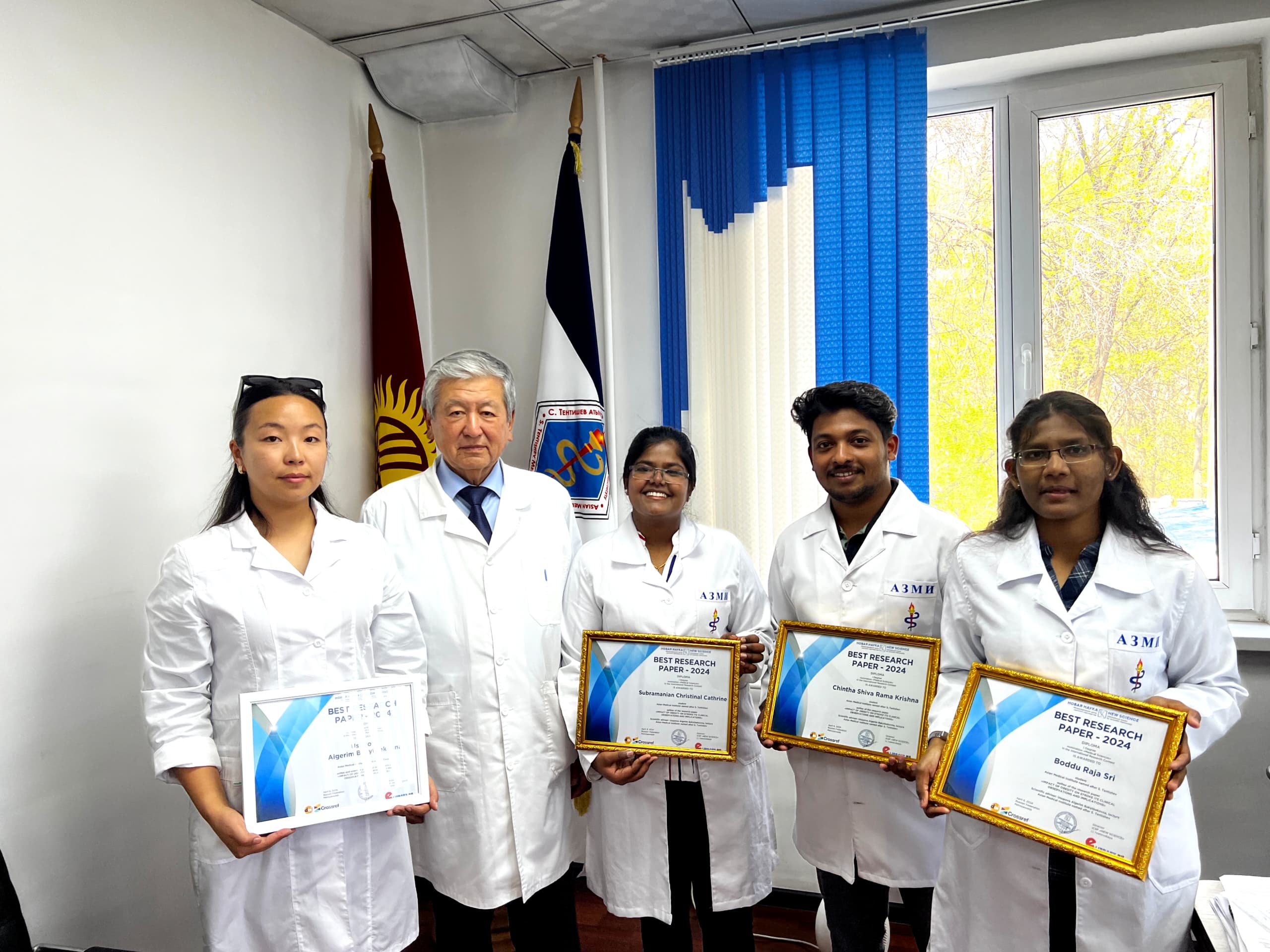 В I Международном научно-исследовательском конкурсе «Лучшая исследовательская работа-2024» ,которая проводилась Международным центром научного партнерства,Российская Федерация преподаватель кафедры «АГиП» Усупова Айгерим Бакытбековна совместно с тремя нашими студентами Boddu Raja Sri , Subramanian Christhinal,Shiva Rama Krishna предоставили свою научно-исследовательскую статью “IMPACT OF OBESITY ON STROKE ITS CLINICAL OBSERVATIONS AND IMPLICATIONS” , исследование которой проводилось на протяжении 2х месяцев в стационаре г.Кант,стали победителями в конкурсе и были присвоены Дипломами I степени.