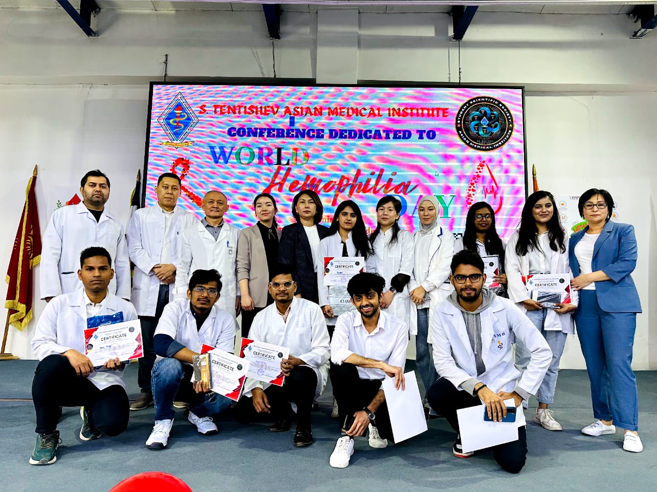 17 апреля 2024г студенты 2 и 3 курса АзМИ им.С.Тентишева приняли участие во Внутривузовской студенческой конференции «Патофизиологические аспекты нарушений гемостаза при гемофилии », приуроченной к Всемирному дню борьбы с гемофилией.