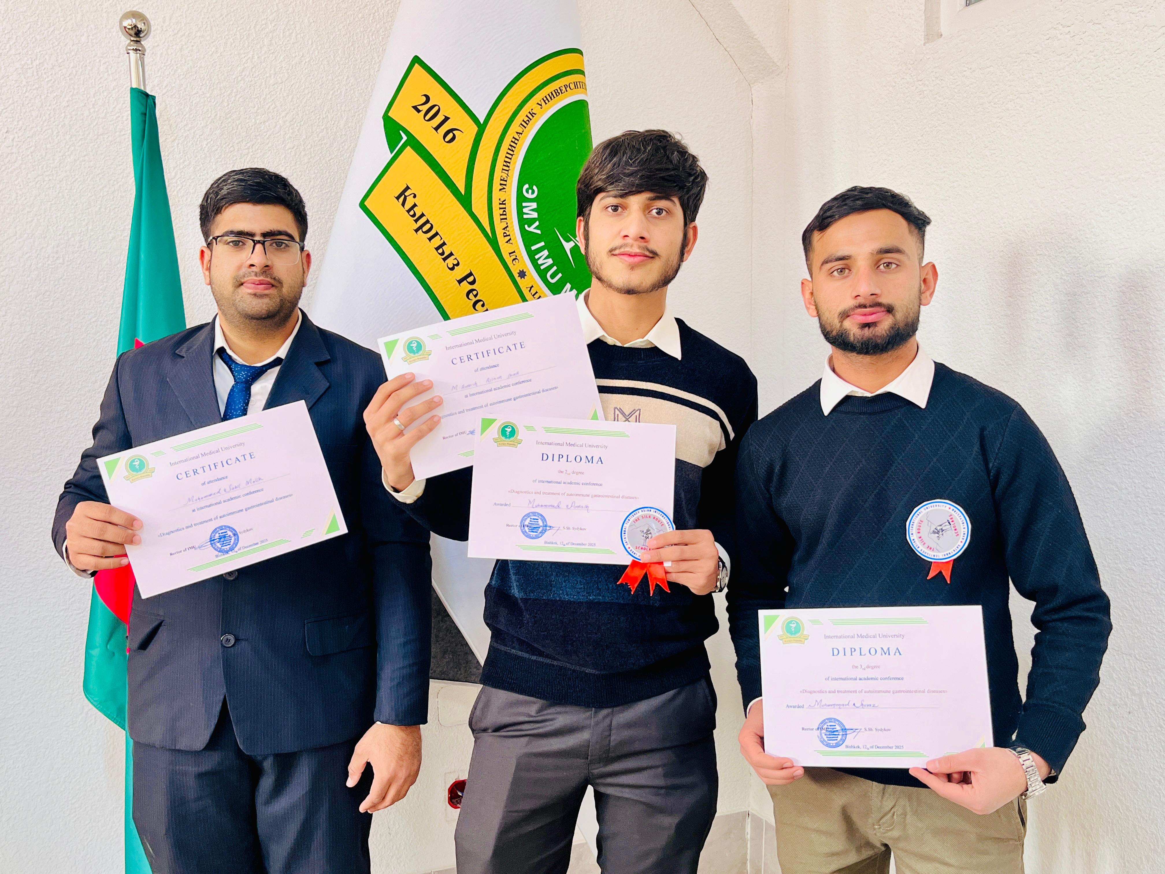 12 декабря студенты S. Tentishev Asian International University продемонстрировали высокий уровень академической подготовки, одержав уверенные победы на двух престижных научных конференциях, состоявшихся в Международном медицинском университете (IMU).