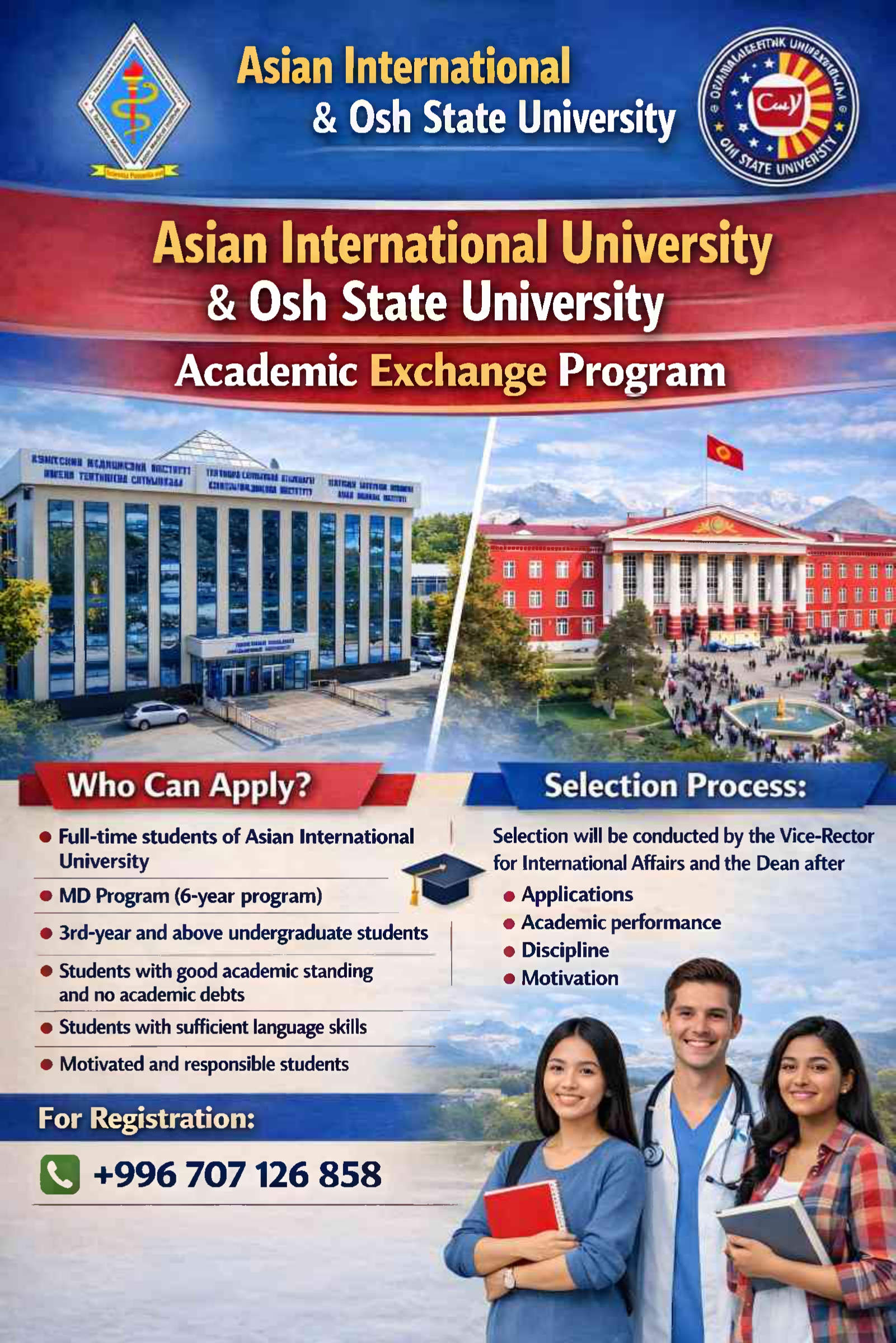 Азиатский Международный университет приглашает студентов принять участие в Программе академической мобильности совместно с Ошским государственным университетом. Участие в программе позволит расширить академические горизонты, получить новый опыт и развить профессиональные навыки.