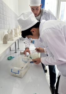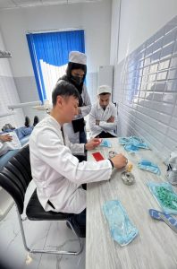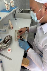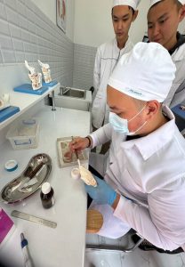 - В период с 23 по 25 апреля 2025г. на базе кафедры стоматологических дисциплин АзМУ им. С. Тентишева под руководством преподавателей проводились совместные Workshop’ы по ортопедической стоматологии среди студентов стоматологического факультета и студентов специальности «Стоматология ортопедическая». В ходе данных мероприятий нами были отработаны навыки взаимодействия врача-стоматолога и пациента, врача-стоматолога и зубного техника. Будущие врачи-стоматологи работали над препарированием зубов, получением оттисков с помощью слепочных ложек, регистрацией прикуса. Далее полученные оттиски передавались в зубо-техническую лабораторию. Будущие зубные техники отрабатывали навыки отливки гипсовых моделей, фиксации челюстей в окклюдаторе в положении центральной окклюзии, изготовления восковых базисов съёмных протезов, постановки зубов, починки протезов.