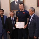 В вольной борьбе бронзовые медали завоевали Яков Чаплин, Абдымалик Карачов, Эрназар Акматалиев и Жакшылык Байташов — им также вручили по 300 тысяч сомов от федерации и по 70 тысяч сомов от АзМУ им.С.Тентишнва.